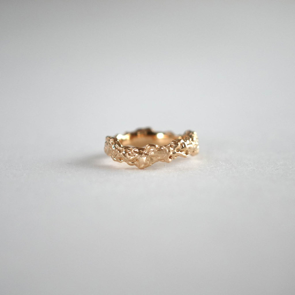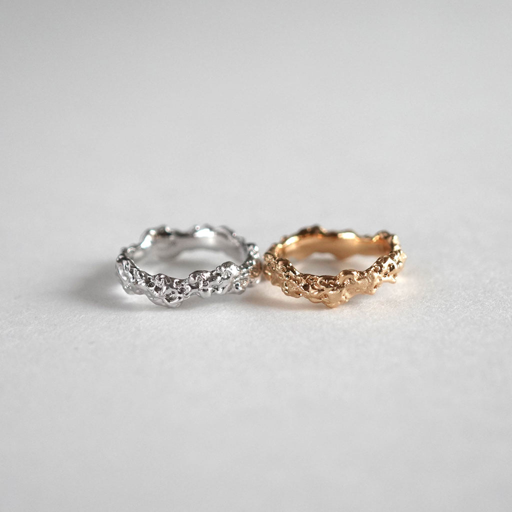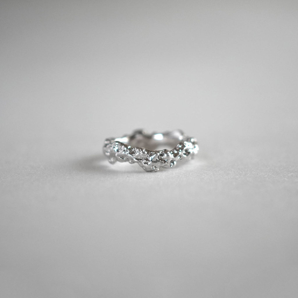 大地の巨大な力を象徴するMagma、その魅力を余すところなく楽しめるボリューミーなピンキーリングです。切れ目なく現れるテクスチャーは常に表情を変え、使い込むほどに柔らかな艶が増してしっとりと身体に馴染んでいきます。