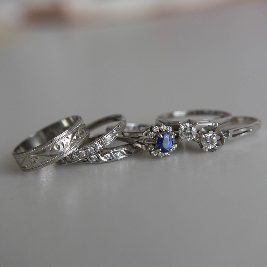 地金の90%がプラチナ、残りがパラジウムとルテニウムからなる合金です。K18WGよりもグレイッシュな銀色で、磨くとよく光ります。
