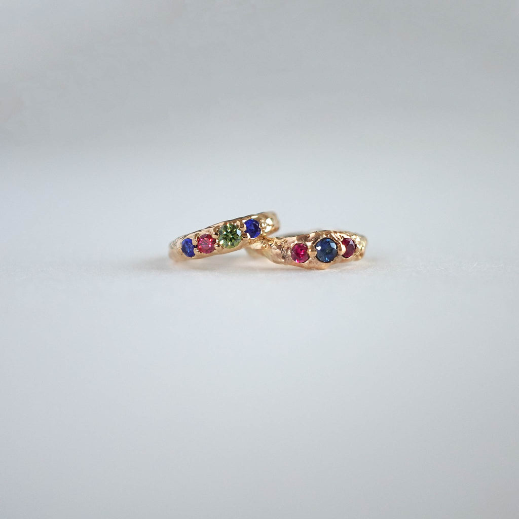 宝石は3石、4石、5石のレイアウトから、それぞれお好きな宝石でお仕立てします。