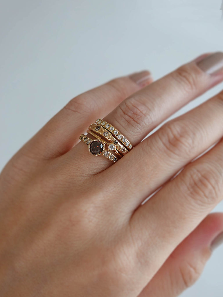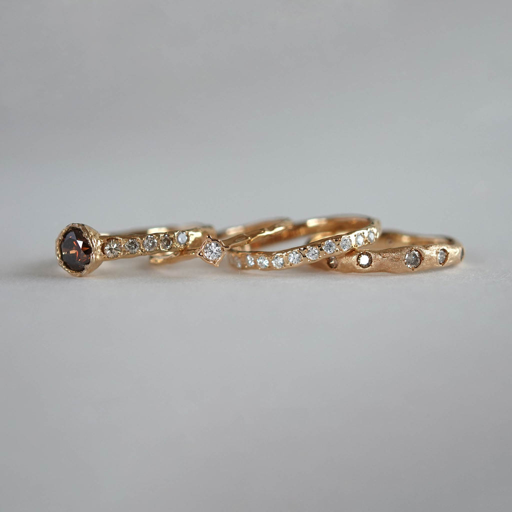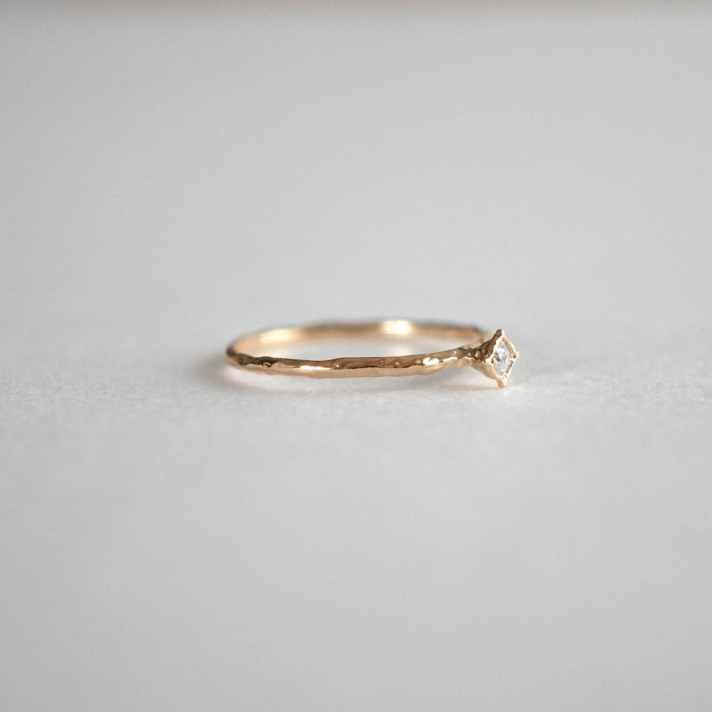 星に願いをかけるように、指元の宝石に密かな思いを込めて。さりげなくもエッジのある立体的なデザインで、いつでも心の中の願いを呼び起こしてくれるようなリングです。「願い星」のモチーフから、「小さなお星さま」を意味する”Estrellita (エストレジータ)”と名づけました。