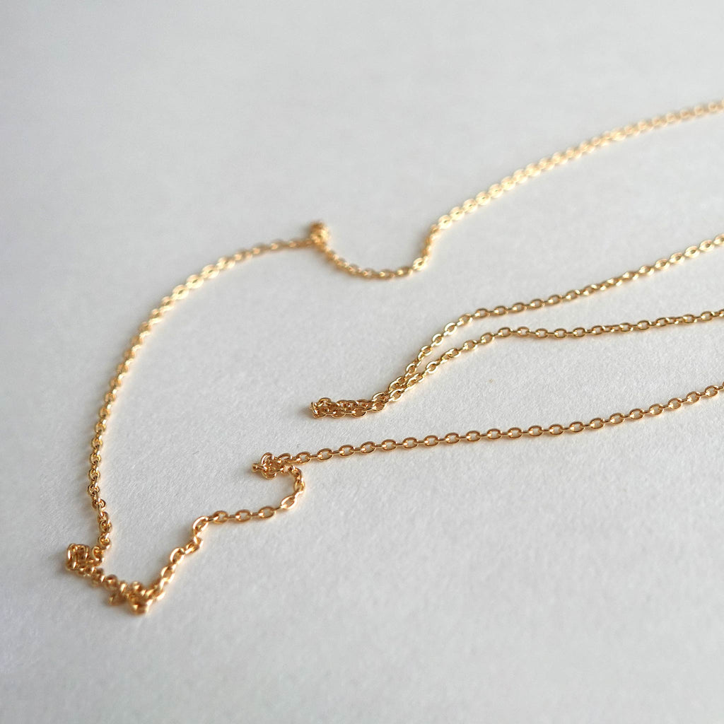 地金はノウ・ヴェルメイユ(K10 +K24厚メッキ) またはK18イエローゴールドから、長さは40cm, 50cm, 60cmからお選びいただけます。