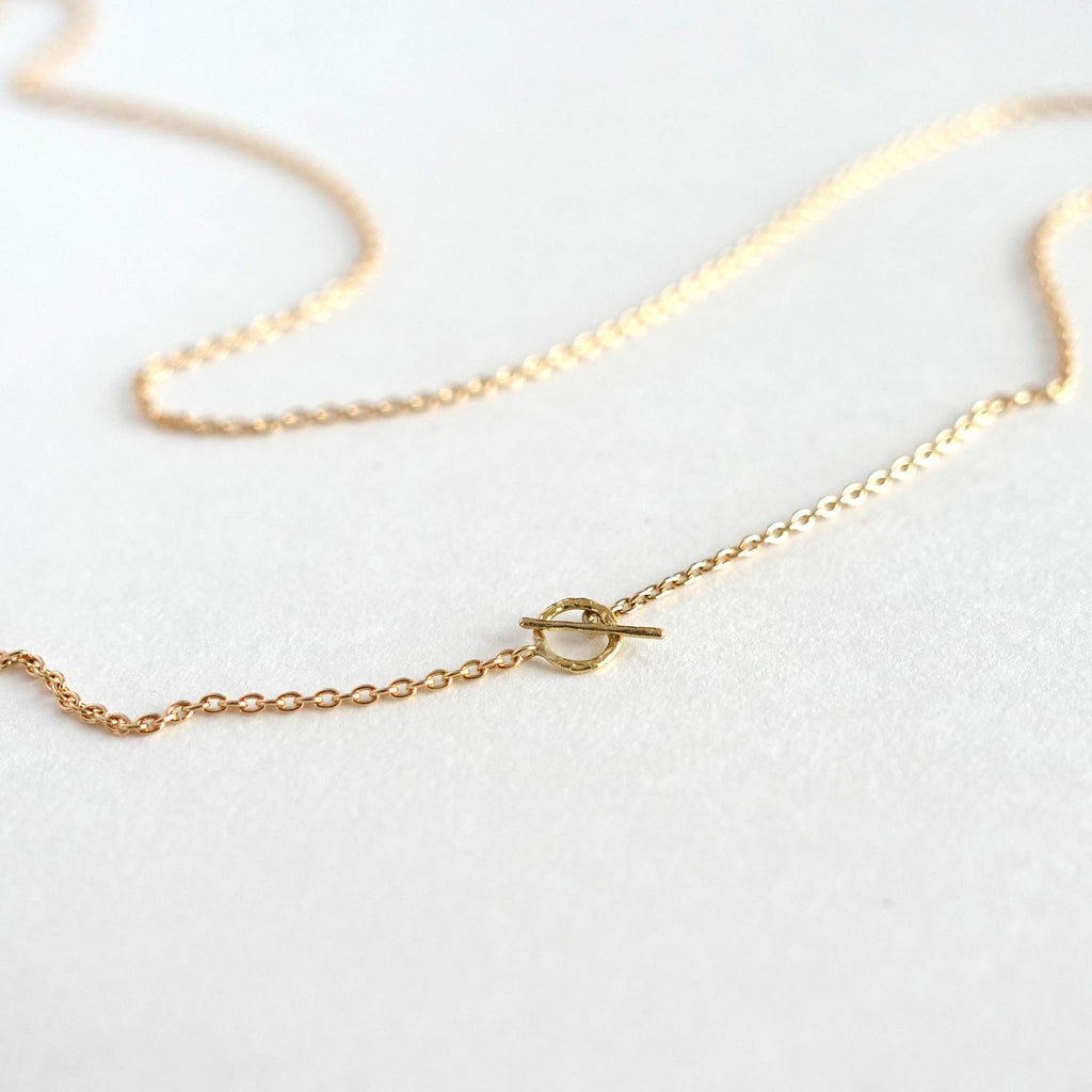 しっかり太さのあるシンプルなアズキチェーン。オリジナルの留め具で取り付けやすく外れにくい作りになっています。端のT字金具に直接Joyaチャームを取り付けたり、カラビナパーツでネックレスにしたりと自在にアレンジできます。
