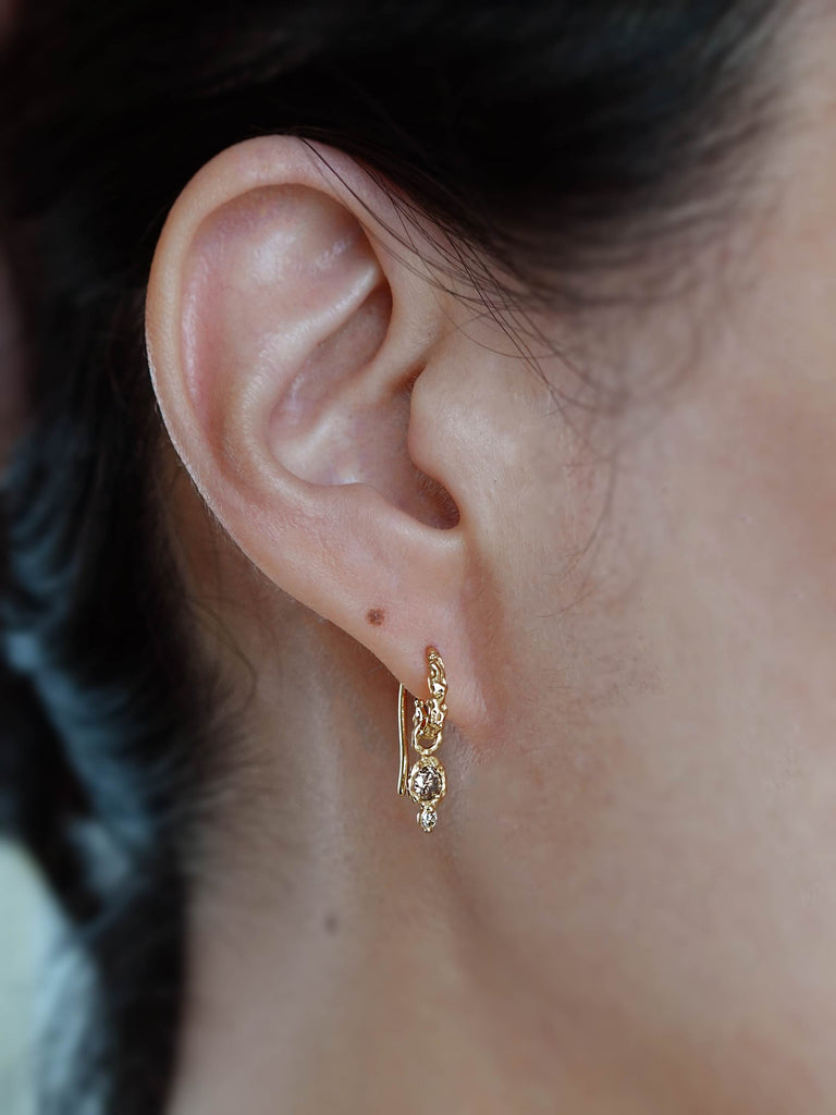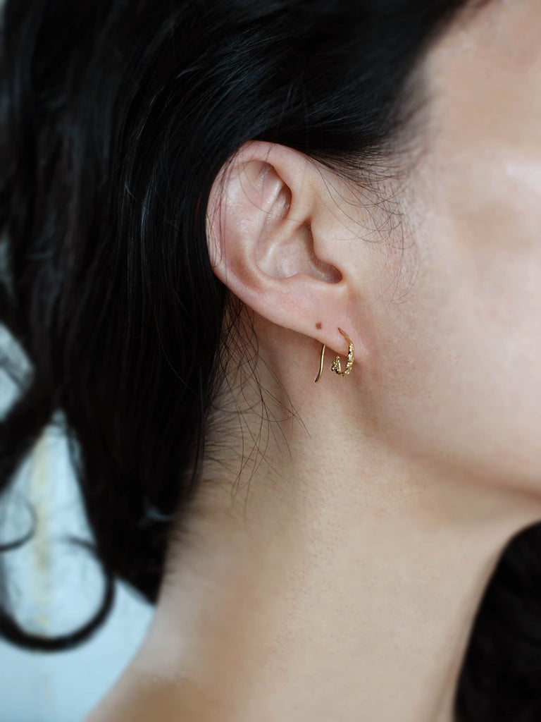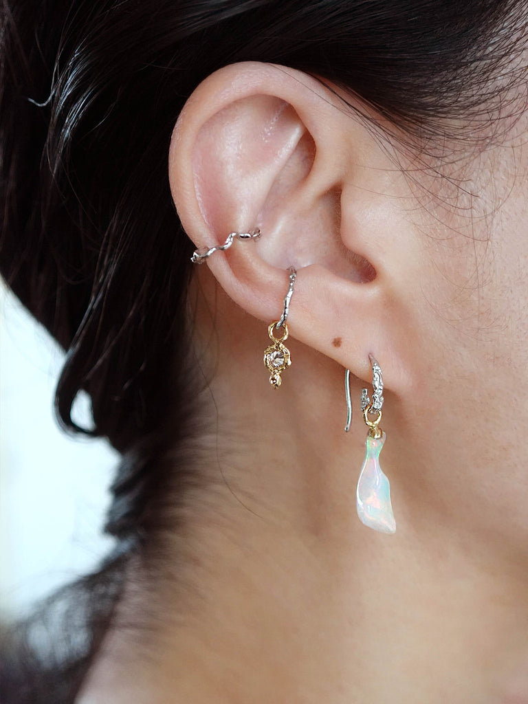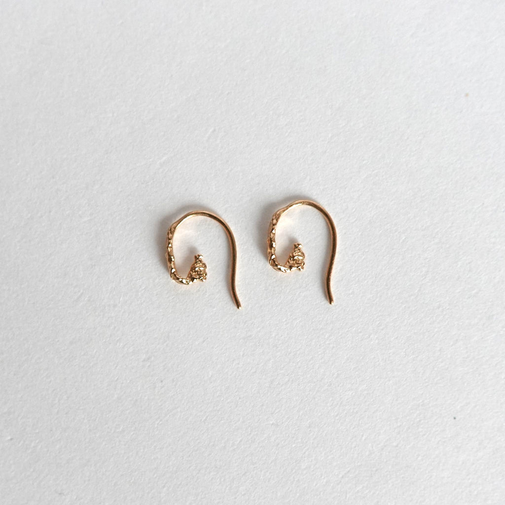 とろけるような流線型のシェイプが印象的なフックピアス。ヌーディな佇まいは、そのままさらりと身につけても、Joyaチャームを通しても楽しめます。