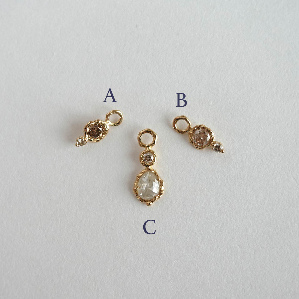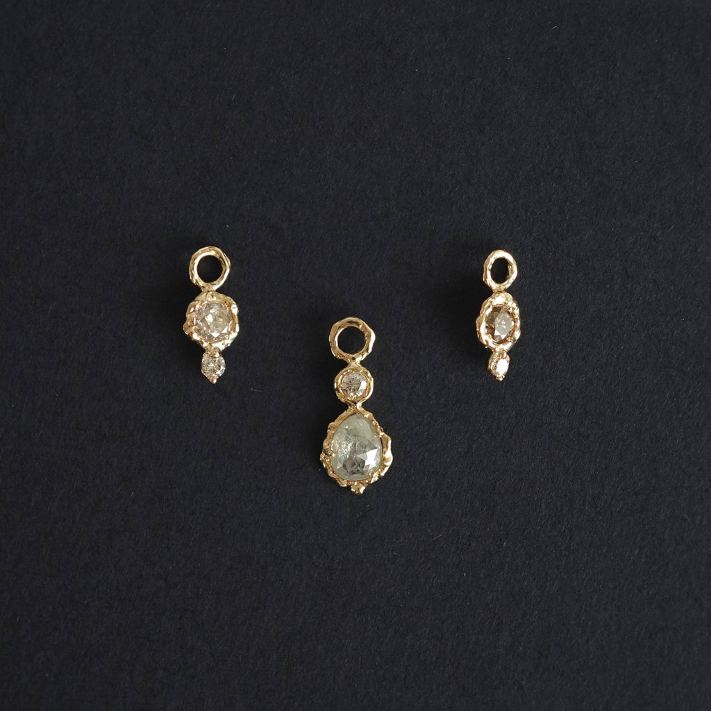 デザイナーが選りすぐった個性豊かな天然石を、1点ずつ石に合わせて仕立てました。自然が生む形の魅力をそのまま表現した遊び心満載のチャームは、身につける場所によって印象が変わり、無限の楽しみを提案します。